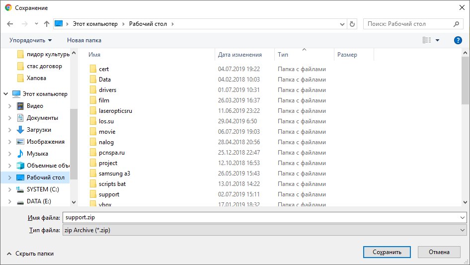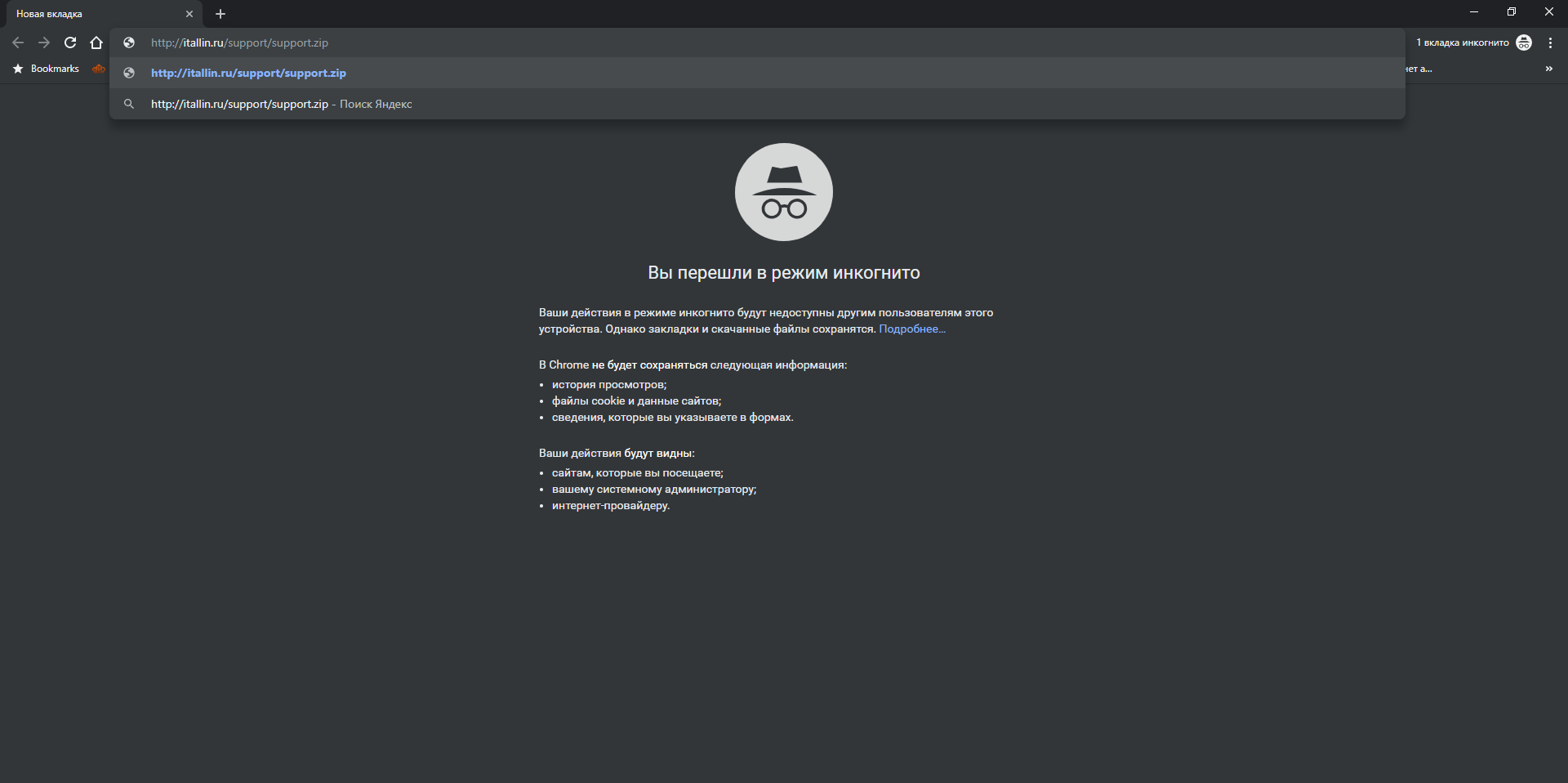 Открыть ссылку: http://Itallin.ru/support/support.zip и скачать архив на рабочий стол.